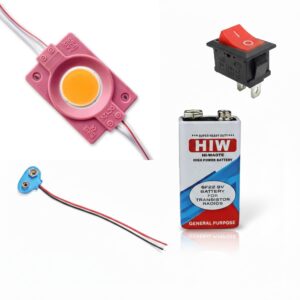 UNIVERSAL HUB COMBO OF 12V PINK COIN LED Light Module Kit with 2 PIN ON/Off Rocker Switch, 9V Battery & Battery Clip Connector ? DIY Mini Lighting Power Set