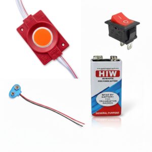 UNIVERSAL HUB COMBO OF 12V RED COIN LED Light Module Kit with 2 PIN ON/Off Rocker Switch, 9V Battery & Battery Clip Connector ? DIY Mini Lighting Power Set