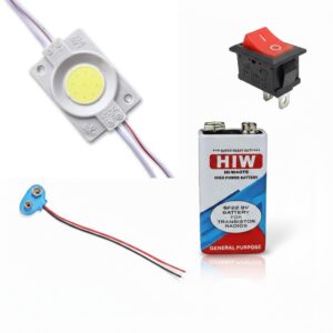 UNIVERSAL HUB COMBO OF 12V COOL WHITE COIN LED Light Module Kit with 2 PIN ON/Off Rocker Switch, 9V Battery & Battery Clip Connector ? DIY Mini Lighting Power Set