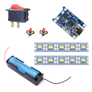 COMBO OF 4V LED STRIP 18650 BATTERY AND HOLDER 2PIN RED SWITCH, 4PIN MICRO SWITCH AND TP4056 CTYPE MODULE KIT FOR SCHOOL PROJECTS