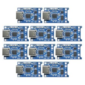 TP4056 Type-C USB Battery Charging Module, 1A Lithium Battery Charger Board, 10 Pack, Blue PCB with Protection Circuit