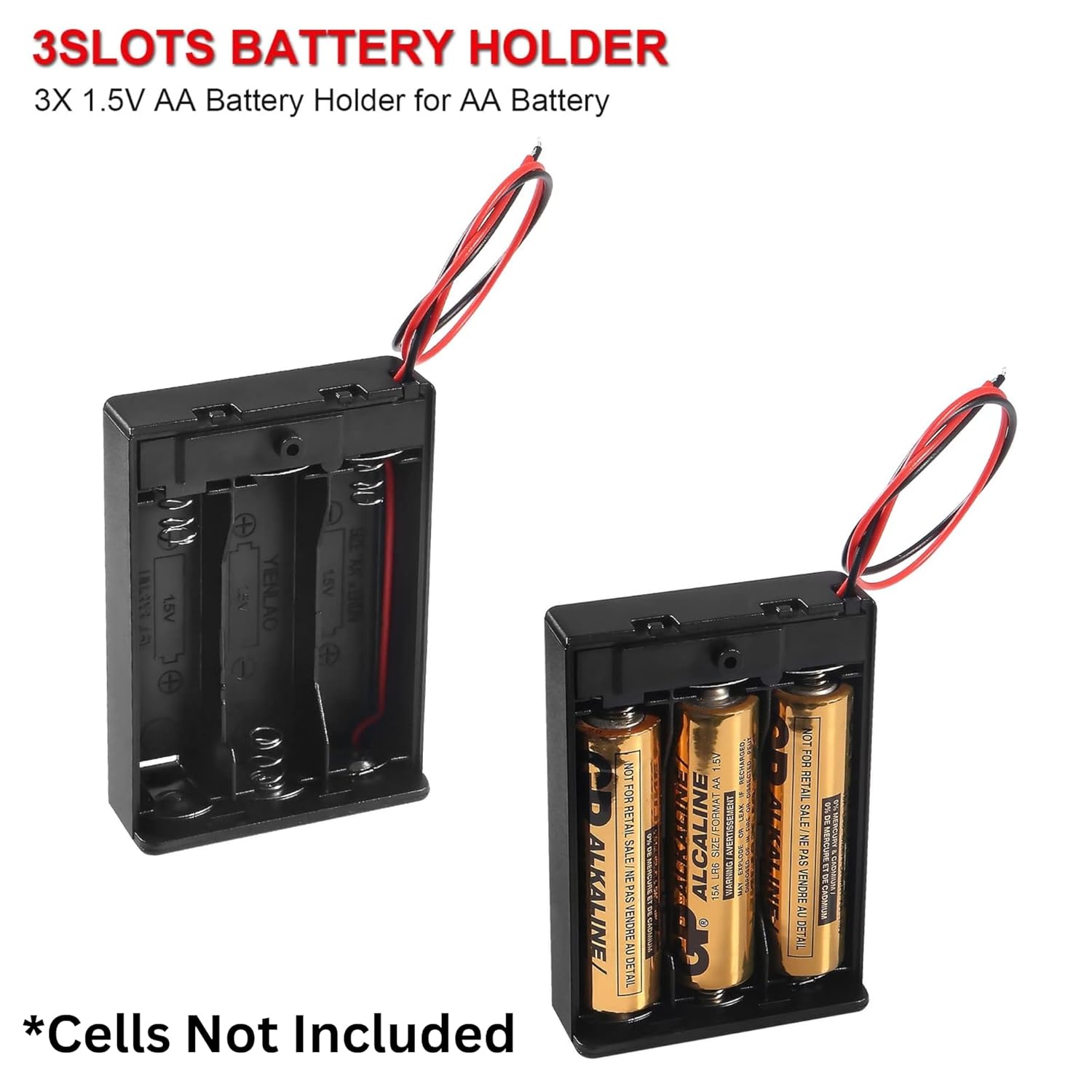 This AA 3 Cell Battery Holder is a durable and reliable solution for holding three AA batteries securely. Made from high-quality hard plastic, it protects your batteries while providing a safe and stable connection. The pre-attached wire leads (red for positive, black for negative) make it easy to connect to your electronic projects, DIY circuits, Arduino/Raspberry Pi projects, and portable devices.