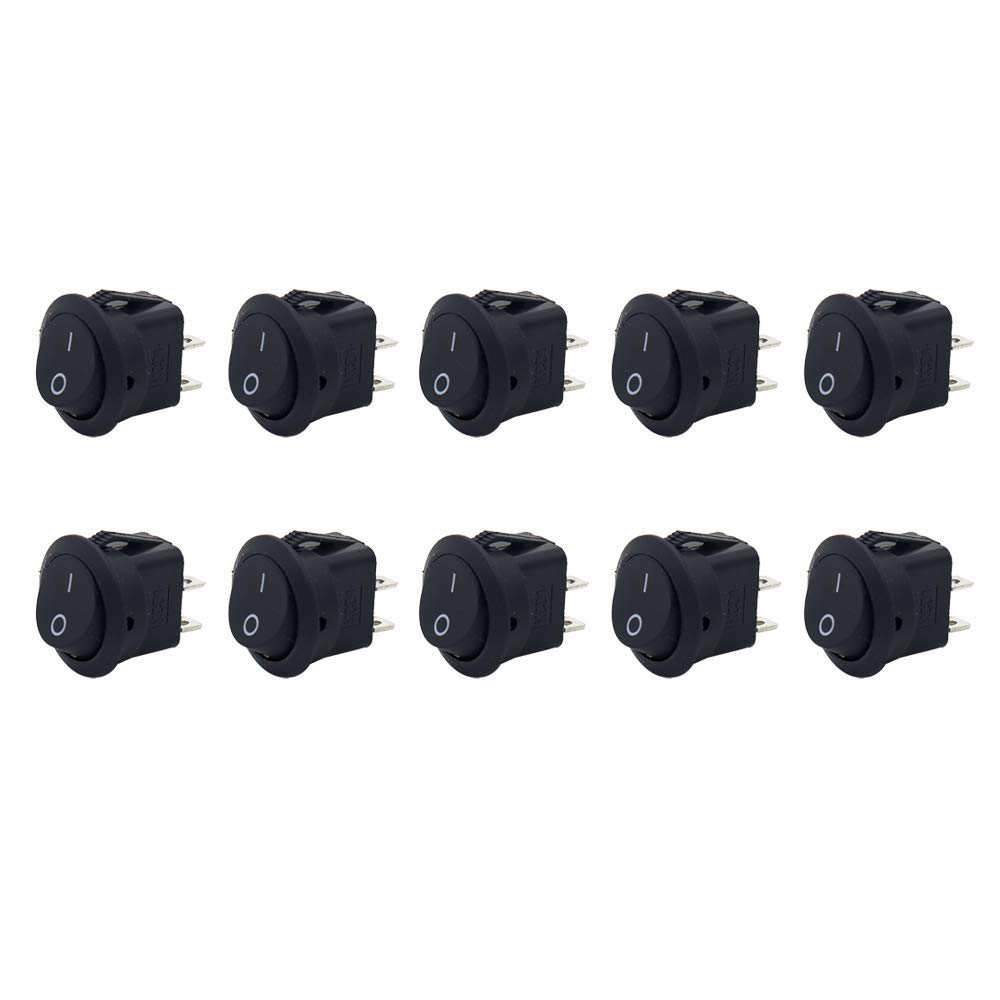 Mounting Type: Snap-inEnhance your DIY projects and electronic repairs with this high-quality Pack of 10 Black Illuminated Round Rocker Switches. These SPST (Single Pole Single Throw) switches feature a simple ON/OFF mechanism, making them ideal for controlling power in a variety of applications, from robotics and automotive dashboards to household appliances.