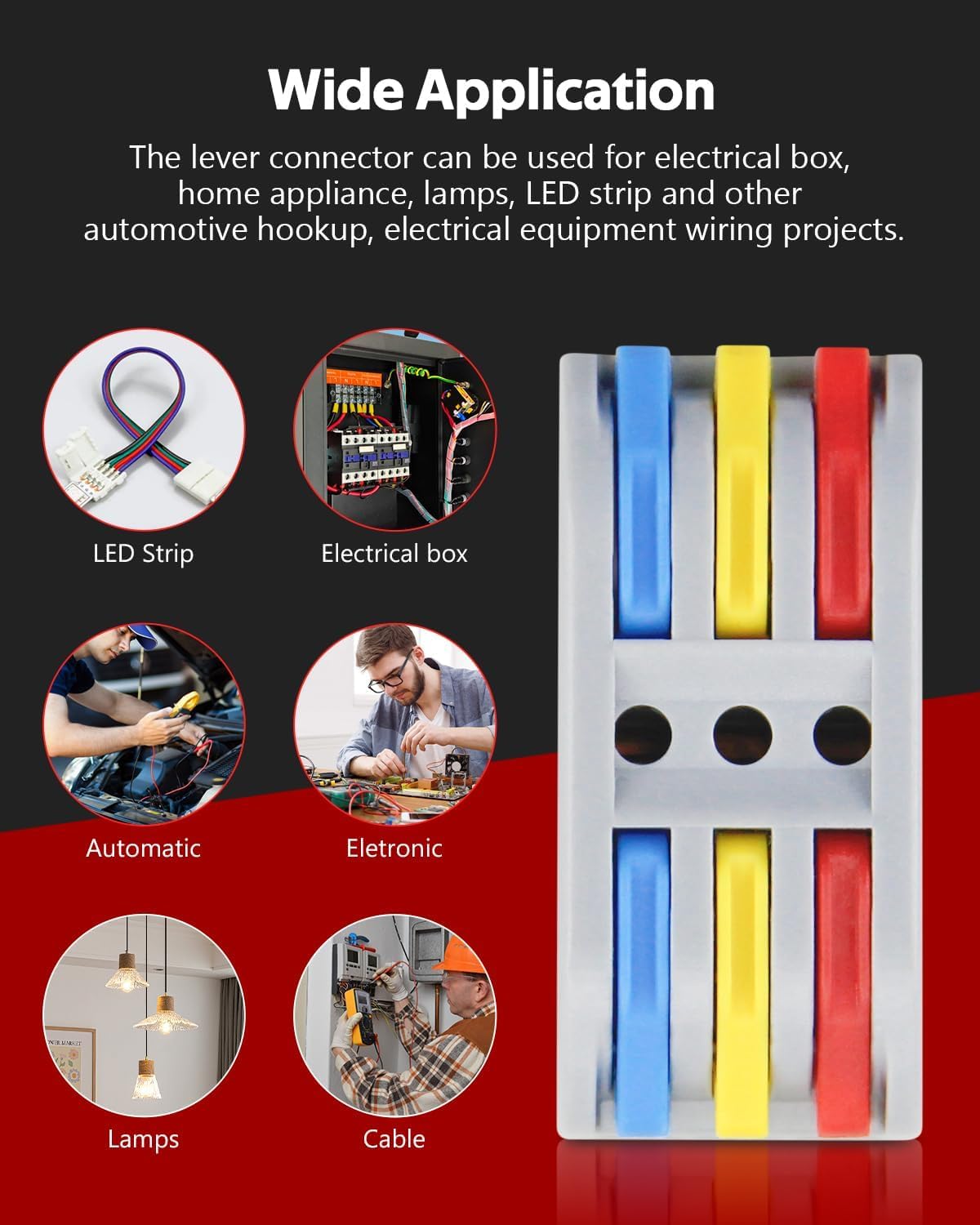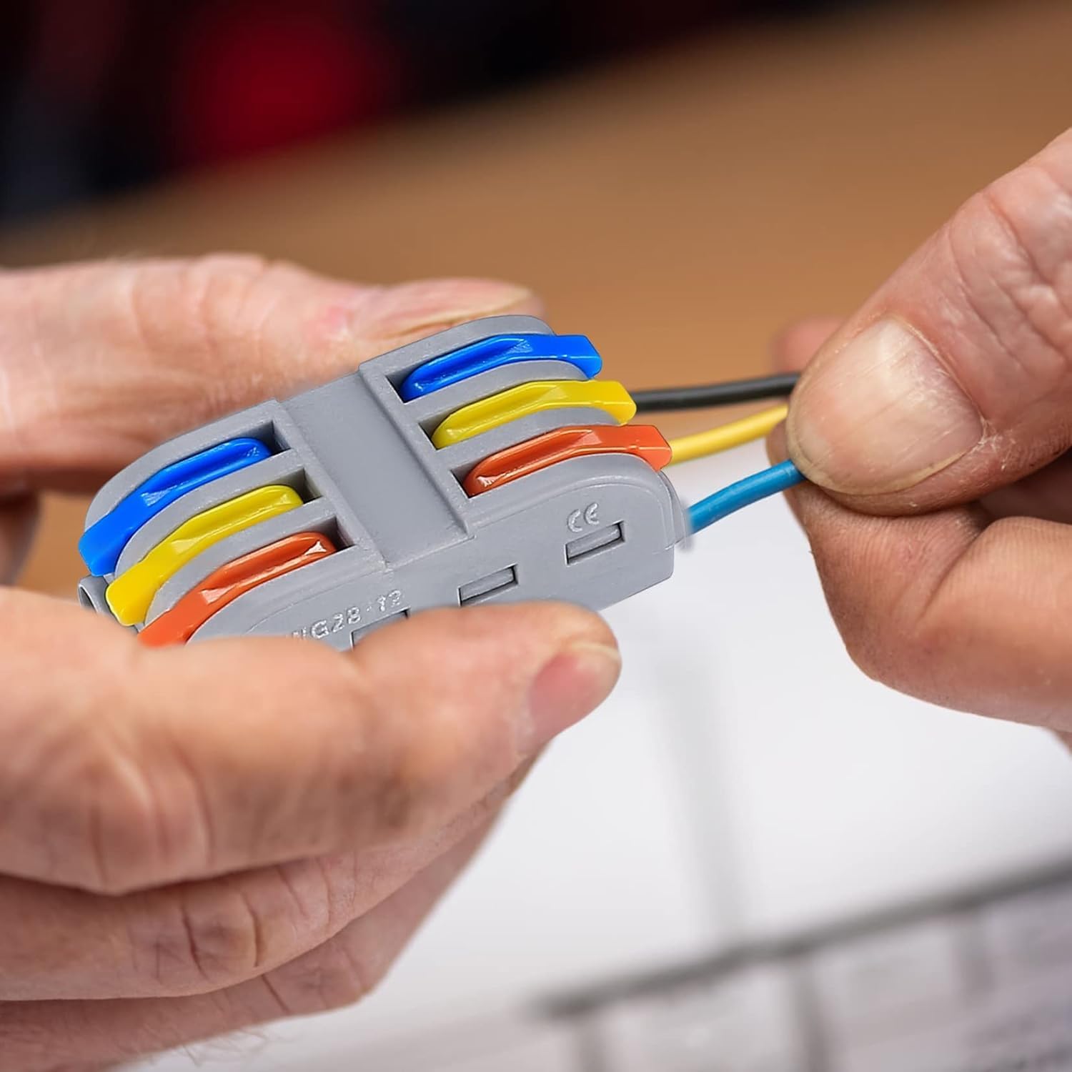 These compact wire connectors revolutionise electrical connections with their innovative lever-operated design. The 3-in-3-out configuration allows you to connect multiple wires quickly and securely without the need for tools or traditional wire nuts. Simply lift the colour-coded levers, insert your conductors into the push-in terminals, and close the levers to create a reliable connection. The built-in test holes enable easy voltage testing without disconnecting wires, making troubleshooting and maintenance remarkably straightforward. The compact grey housing keeps your electrical installations neat and organised whilst the universal design accommodates various wire gauges for residential and commercial applications. Each connector features three input and three output ports, perfect for junction boxes, lighting installations, and general electrical work. The transparent lever mechanism provides visual confirmation of proper wire insertion, ensuring safe and secure connections every time. This pack of connectors gives you plenty for multiple projects around your home or workspace. Whether you’re an electrician, DIY enthusiast, or maintenance professional, these lever cable connectors streamline your wiring tasks whilst maintaining the highest standards of electrical safety and reliability.