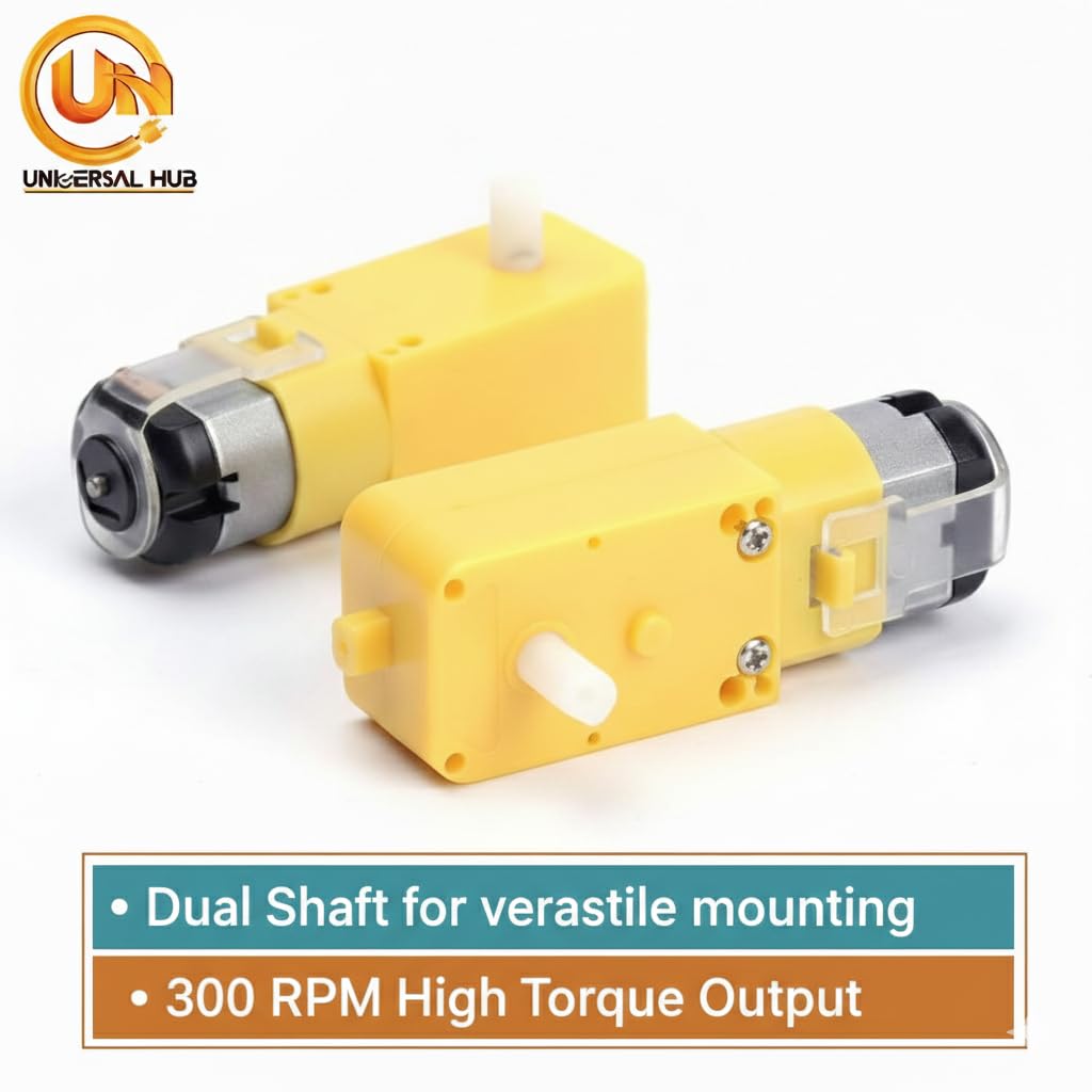 UNIVERSAL HUB 3V-12V Dc Bo Motor Dual Shaft Smart Plastic Car Robot Gear For Arduino Science Projects (Pack Of 05)