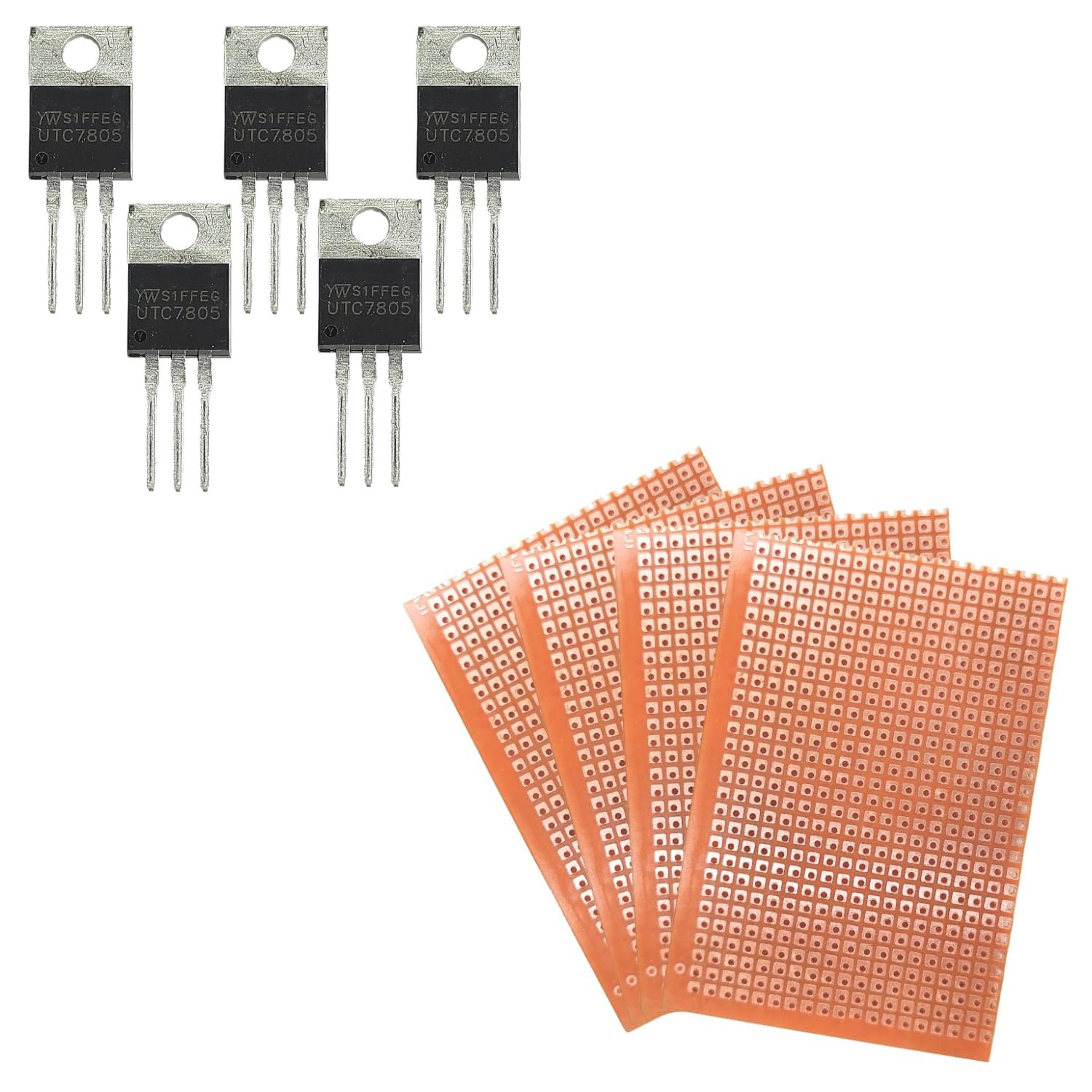 UNIVERSAL HUB GENERAL ZERO PCB 7.5X5CM PACK OF 4 AND 7805 VOLTAGE REGULATOR IC PACK OF 5