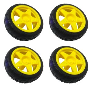 (PACK OF 4)65mm Rubber Tyre Yellow Wheel for BO Motor, Smart Car Robot & DIY Projects ? High Grip DC Gear Motor Wheel for Toy Cars & Robotics